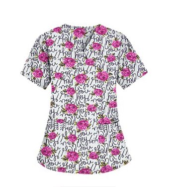 Printed scrub set 4 pocket ladies half sleeve Hey You Print (2 pocket top and 2 pocket black pant)