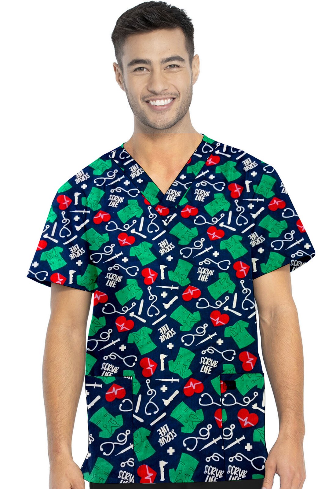 Scrub Life Printed Top V Neck 2 Pocket Half Sleeve